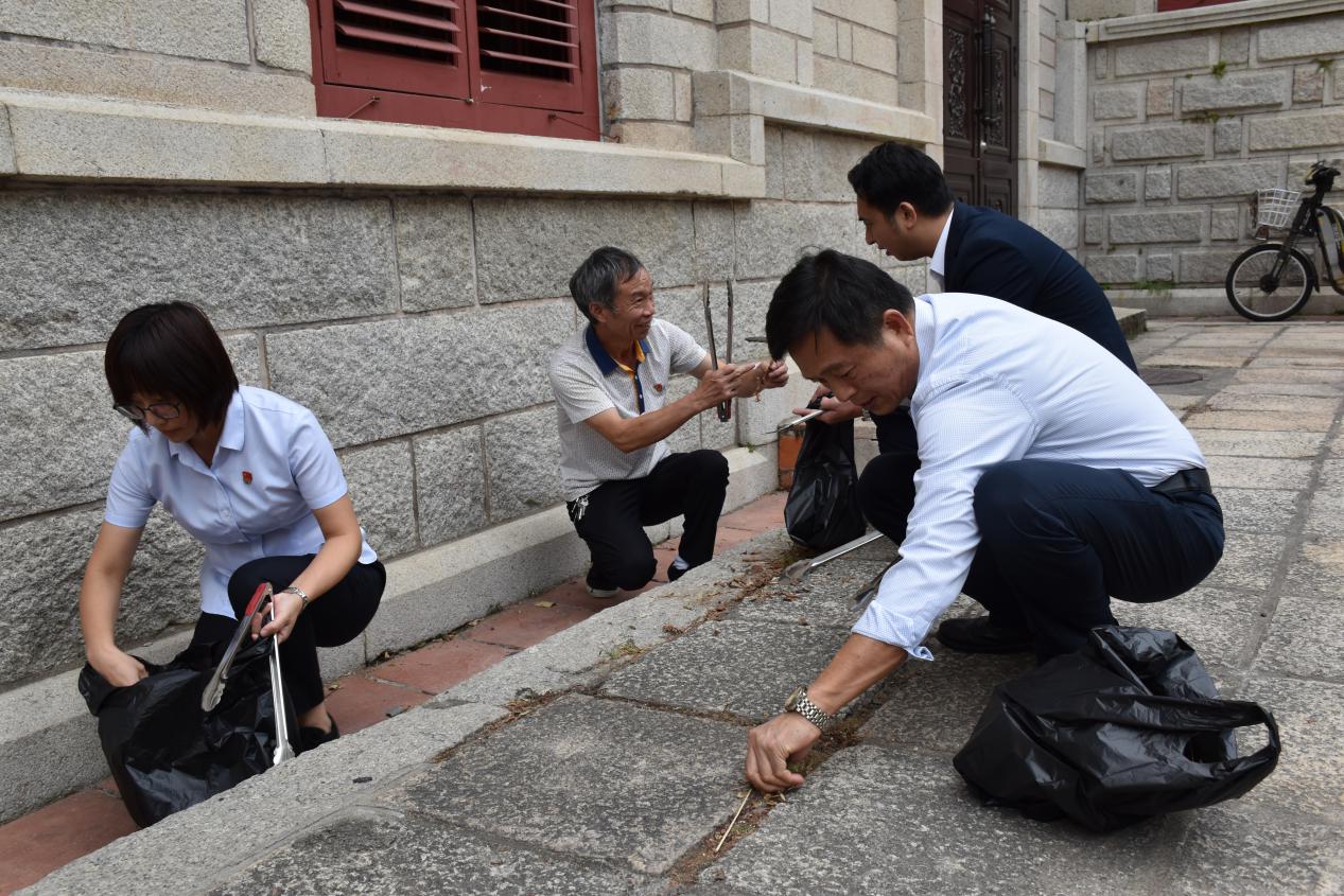 为充分发挥党建引领和党员先锋模范作用,践行后勤服务初心、使命,按照集团“不忘初心、牢记使命”主题教育实施计划,11月22日下午,公寓党支部组织开展主题教育志愿服务,支部党员、预备党员到建南大礼堂周边一带拾捡垃圾,助力厦门大学100周年校庆倒计时500天系列活动顺利开展。