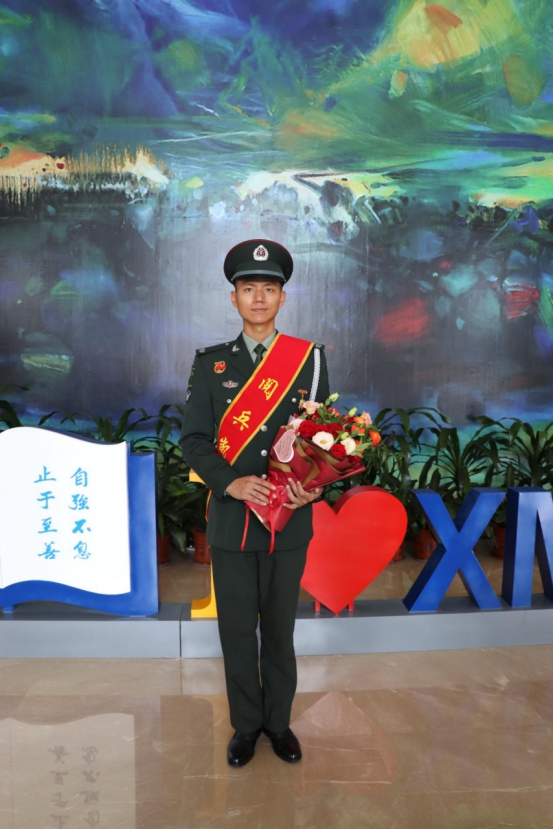 10月14日上午,一场热烈的欢迎仪式在厦大翔安校区德旺图书馆门前举行,维序队员们整齐地分列两旁,用最热烈的掌声和最美丽的鲜花欢迎参加国庆70周年阅兵的刘华阳同志凯旋。