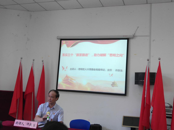 许跃生主任紧紧围绕 “思明之问”怎么来、怎么破解、人大怎么办三个方面展开授课。通过党课学习,支部党员进一步了解思明区情,政府破解发展难题的方案、决心及党员干部的担当,同时也激发了与会人员直面问题的勇气,在干事创业道路上更多钻研、更多实干、更多担当。