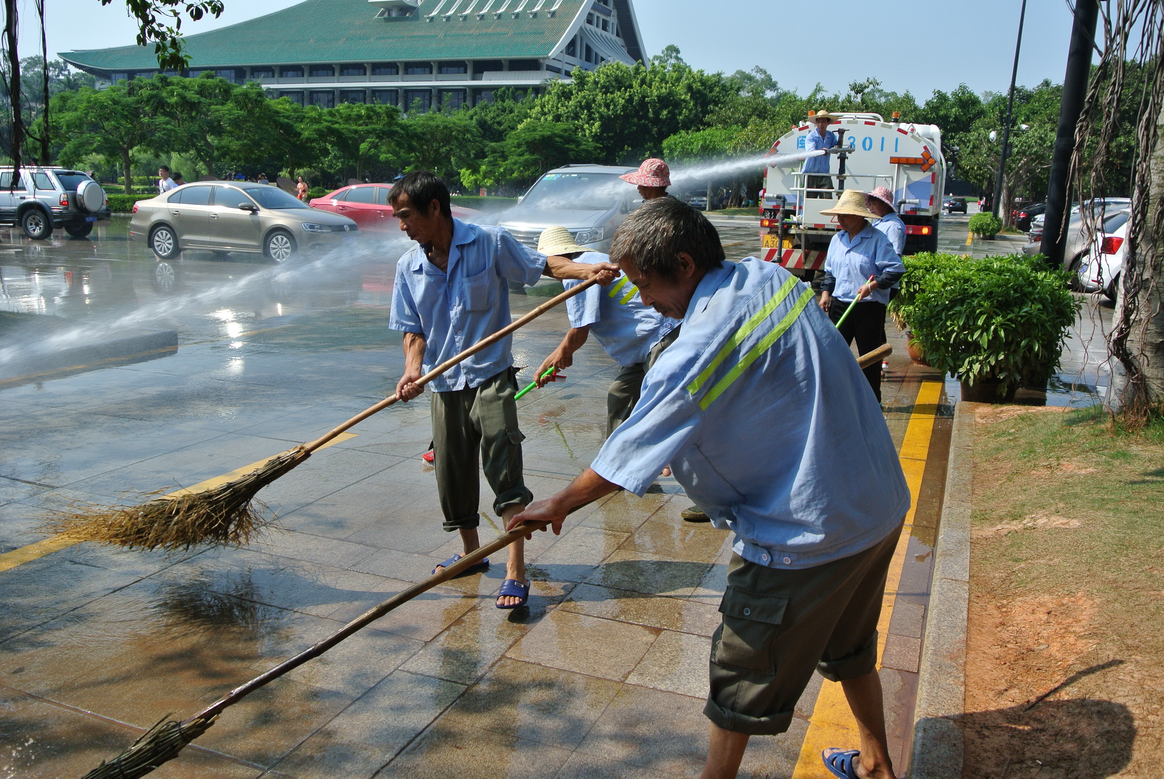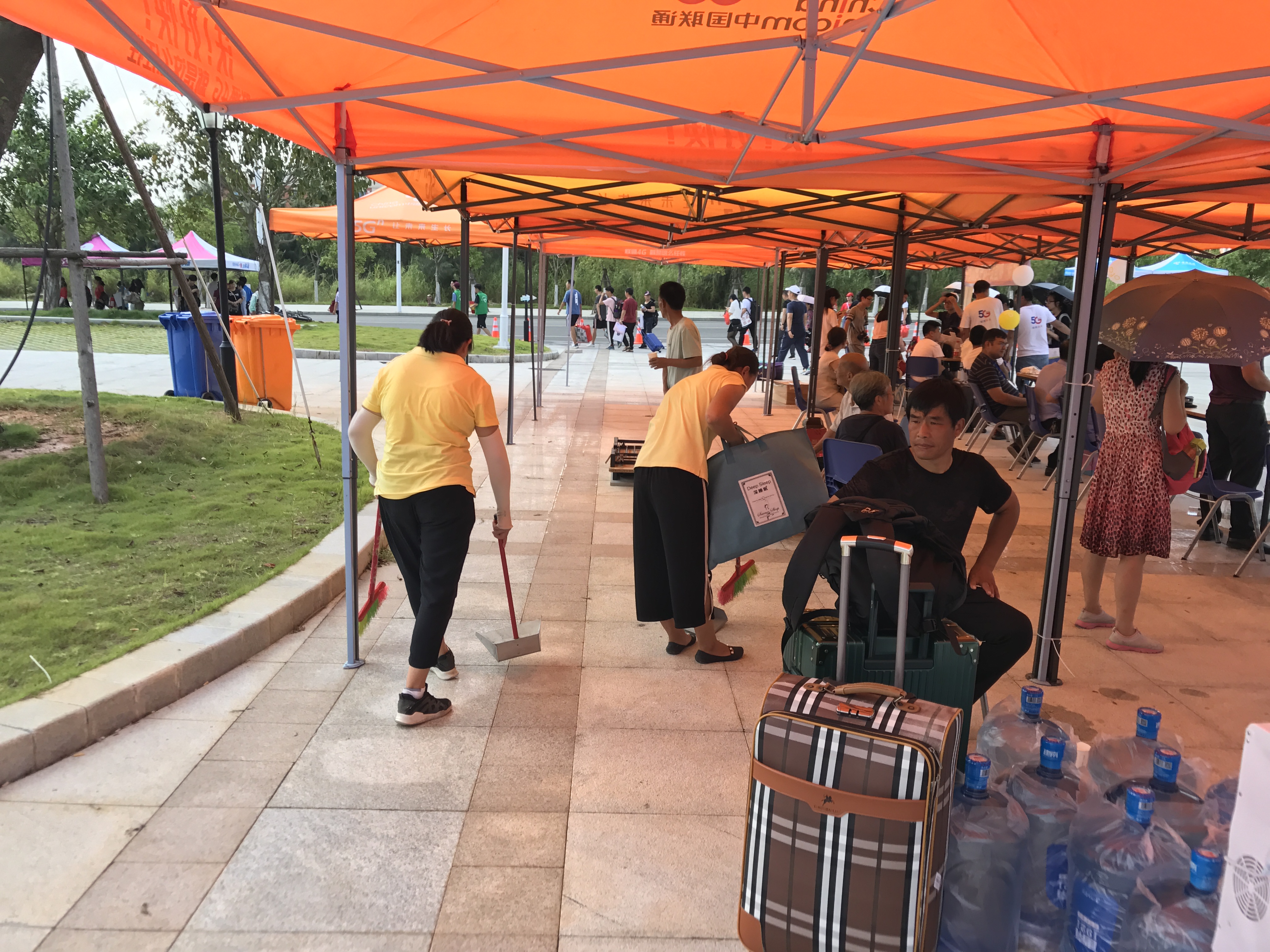 迎新期间,中心共增设校园环境保洁岗60人次、增放垃圾桶40个,开展全天候不间断进行流动保洁并及时清运垃圾,确保迎新现场干净整洁。