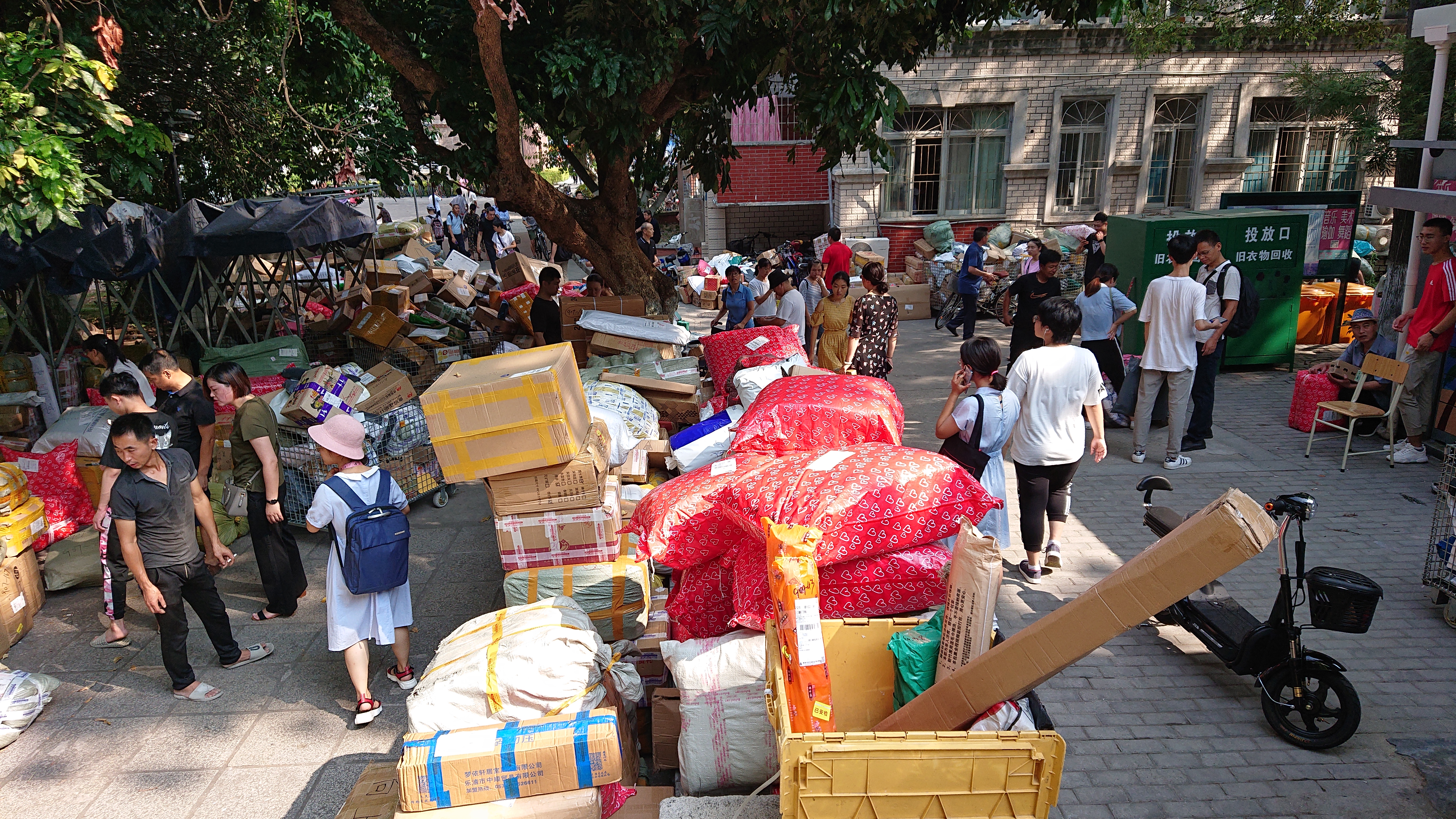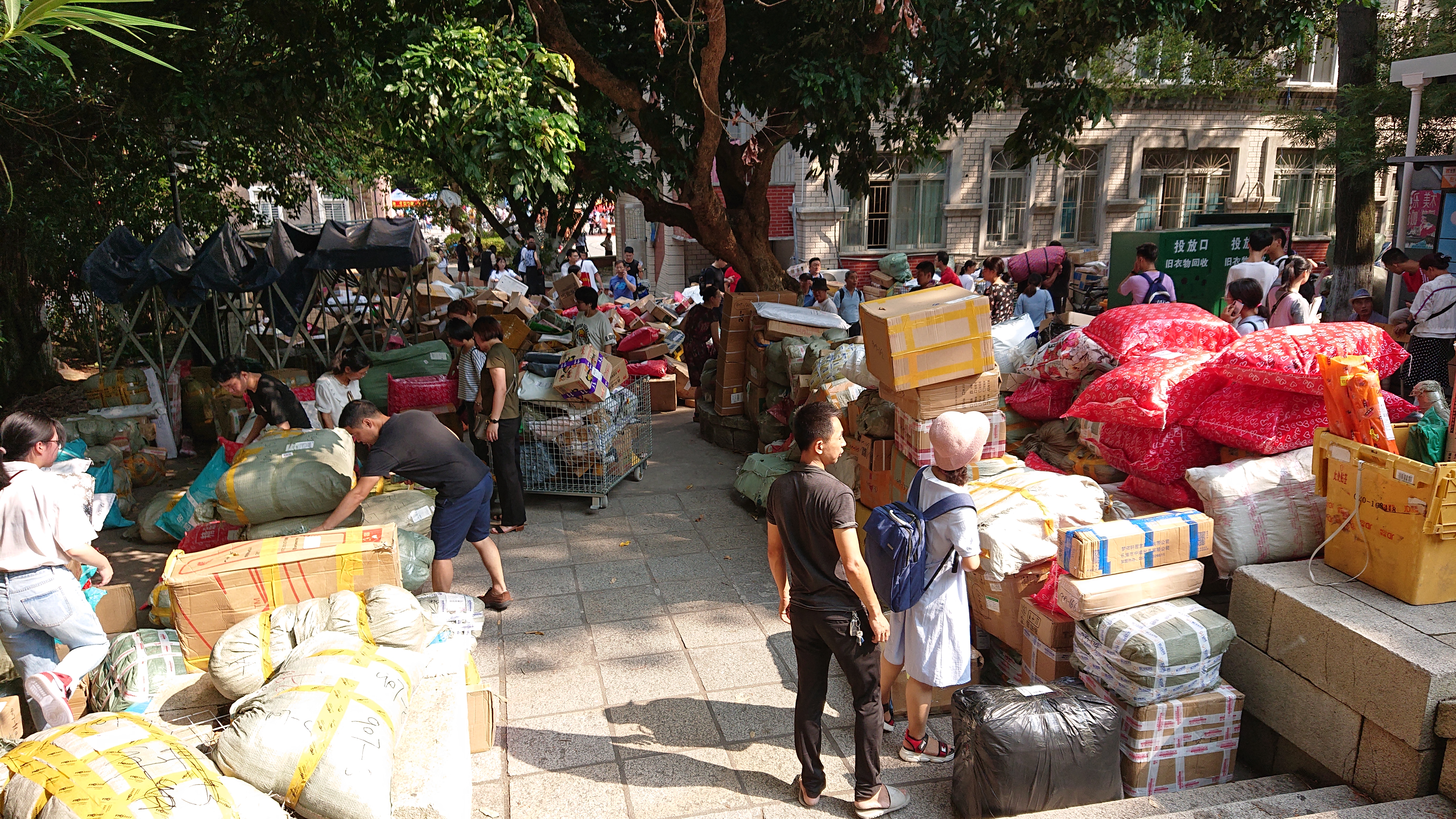 迎新当天也是校园快递到件签收高峰,据邮政服务部统计,迎新期间共到新生行李约280件、生活用品150件、其他约300件。