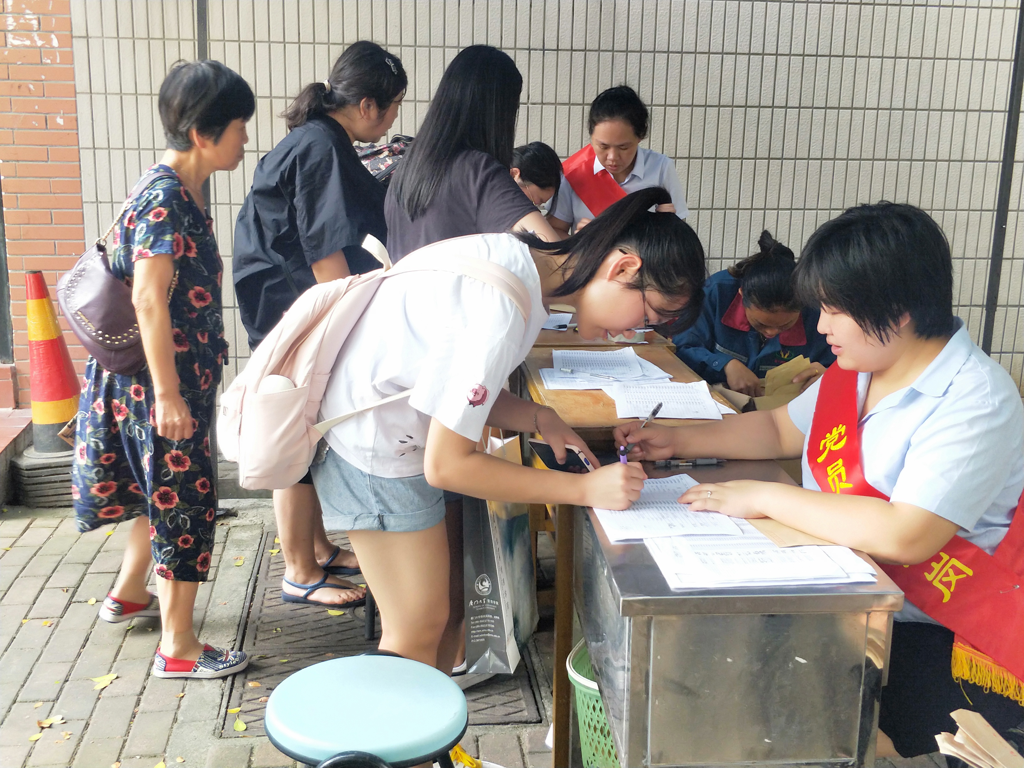 为了确保新生顺利入住,中心在各宿舍片区设立入住办理点,张贴公寓入住须知,公寓支部全体党员发挥先锋模范作用,佩戴“党员示范岗”绶带到各宿舍楼栋迎新点协助办理入住。此外,中心还在办理现场准备了饮用水、纸巾、药品等,为路途劳累的新生及家长提供便利。