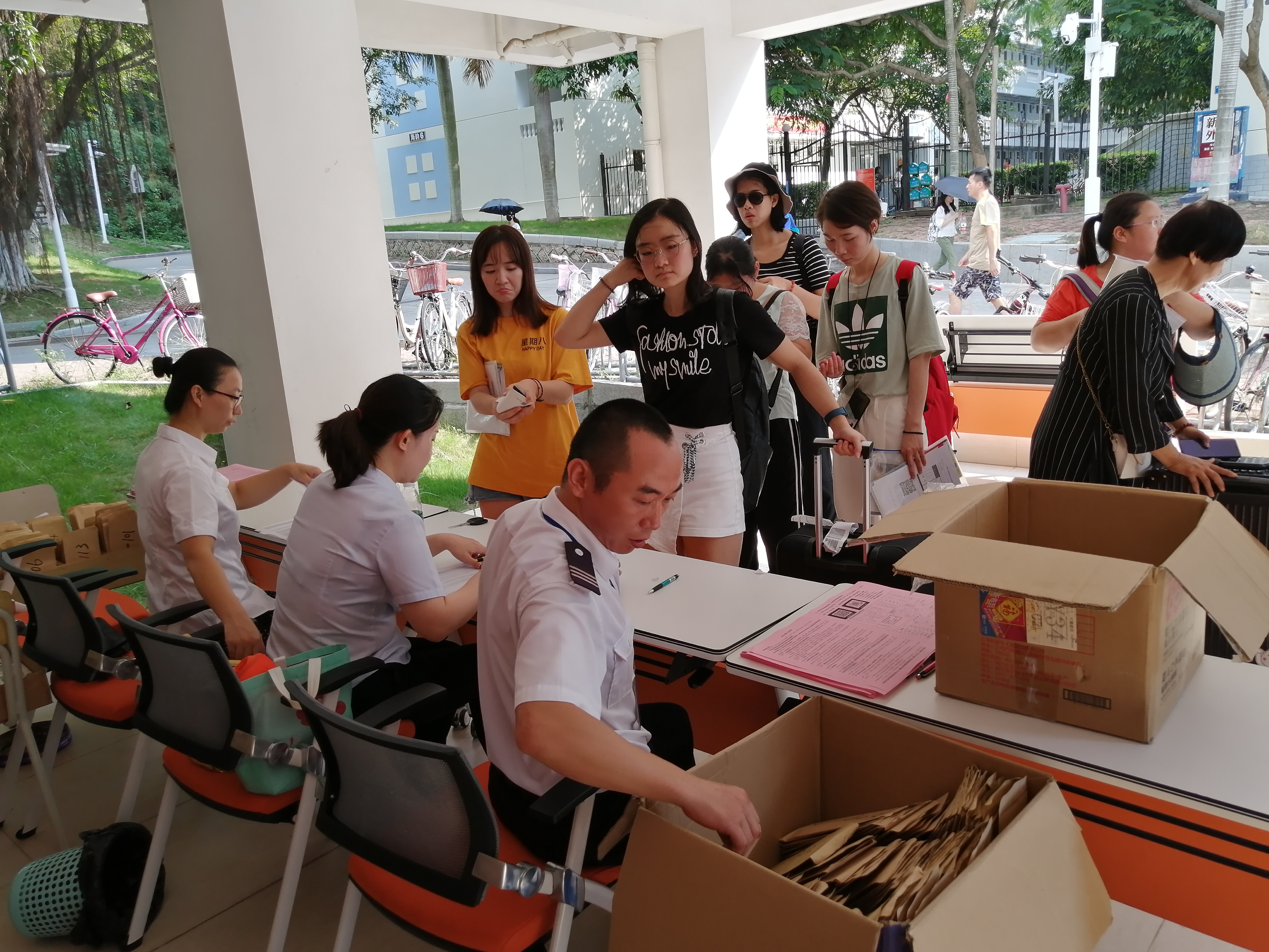 凤凰花又开,欢迎新同学。9月10-11日,近万名2019级新生如期到校报到。根据学校、集团的统一部署,学生公寓与环境服务中心经过充分准备,顺利完成新生入住办理、迎新校园环境保洁、校门秩序维护、新生大件行李托运等相关服务保障任务。