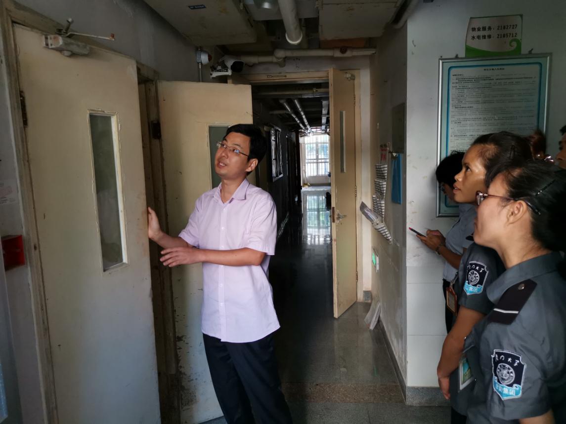 9月12日晚,集团副总经理刘君彬、中心副主任叶晓真陪同校领导、公寓办、保卫处等学校职能部门与省消防总队检查学生宿舍消防安全状况,并随即对检查问题进行了整改。