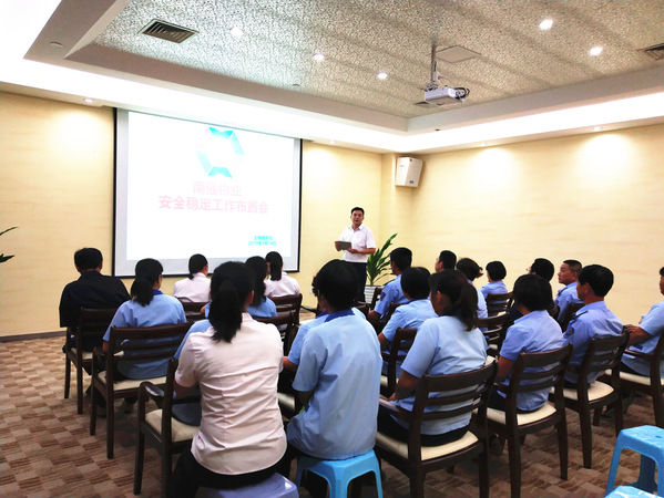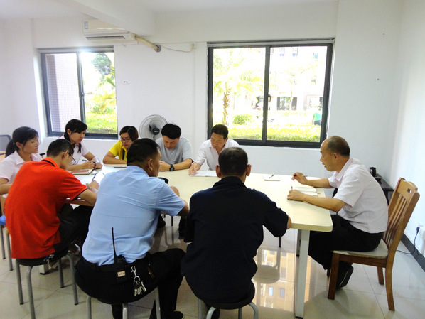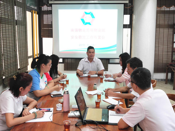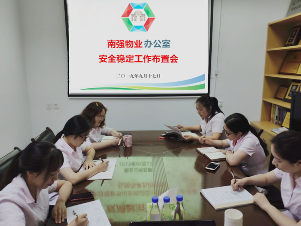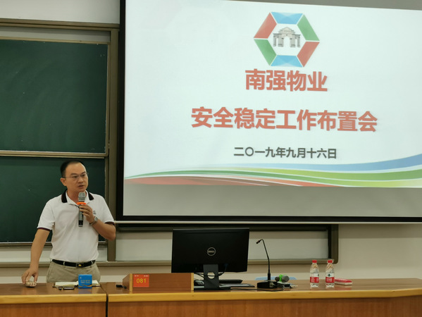 9月16日下午,南强物业在双十中学枋湖校区物业项目部召开安全稳定工作布置会。会议由公司总经理郑东升主持,后勤集团分管物业公司的副总经理刘君彬、公司全体职能部门及项目负责人参加此次会议。