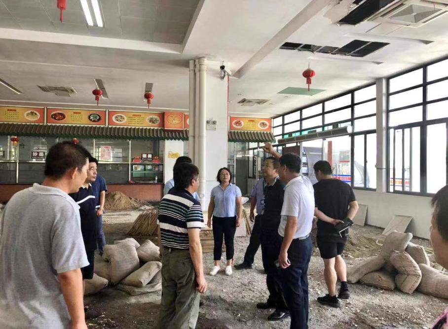 检查组一行先后到东门、南光7南侧、一站式平台建设现场、芙蓉10后面的宿舍防护围栏、综合体育馆等重点场所实地察看指导灾后恢复工作,并到丰庭餐厅了解修购项目进展情况。