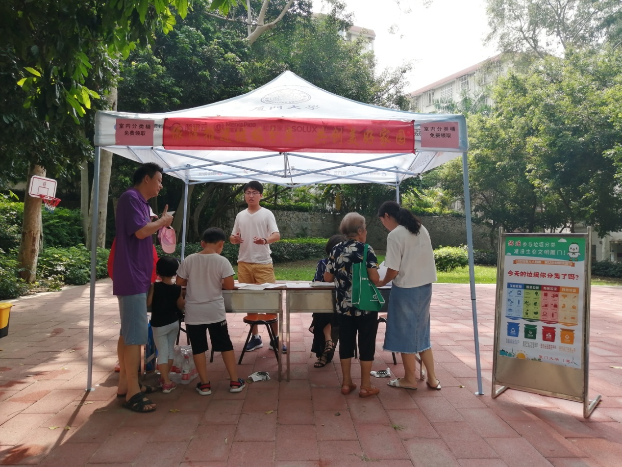 8月13日,学校资产处联合滨海街道,组织演武社区、白城社区居委会和住宅物业共同开展 “依法推进垃圾分类,共创美好家园”主题活动,活动现场除了为校内住户免费发放分类垃圾桶,还进行了垃圾分类知识宣传,包括海报展示、发放宣传页、垃圾分类小游戏等。