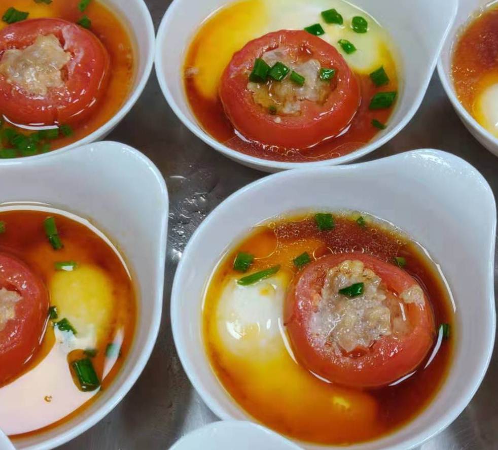 番茄炒蛋吃多了,还没吃过番茄肉沫蒸蛋吧!番茄营养丰富,具有养血生精、长肌壮体、补益脏腑之效,并且维生素A含量高,对于提高身体的免疫力以及调理身体的健康状态有良好的作用。鸡蛋、肉沫加上番茄,不仅色泽诱人,而且味道更是鲜美。