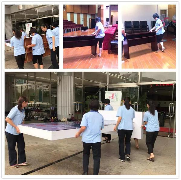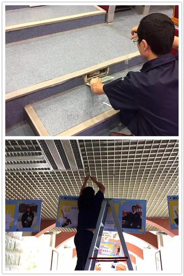 毕业典礼顺利结束后,南强物业员工们立即开展收尾工作,恢复报告厅原貌,以便后续使用。