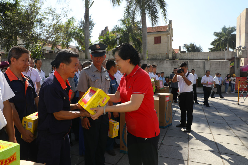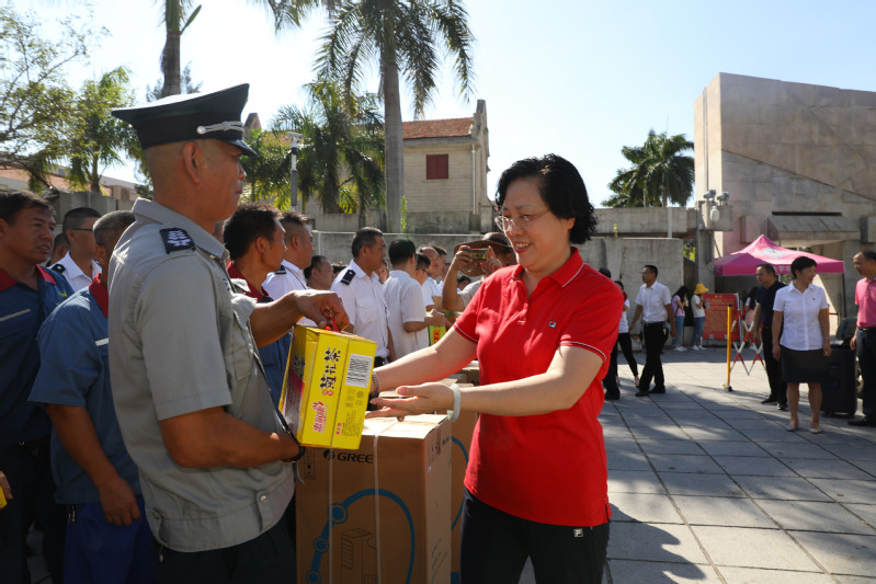 邓朝晖对后勤员工不畏高温坚守岗位,一丝不苟地辛勤工作给予了高度肯定,她代表校党委和校行政向高温下坚守在一线岗位上的后勤员工表示衷心的感谢和诚挚的问候。她表示,学校领导非常关注民生,关心一线员工的疾苦和工作情况,希望通过走访慰问给一线员工带去宁静和清凉,并通过集团把学校对后勤员工的问候和关心传达至一线每位员工,为在艰苦条件下工作的一线员工加油鼓劲。她指出,在夏季,除了高温天气,我们还将面临着台风、暴雨等极端天气,希望集团做好应急预案,加强针对性培训和演练,保障安全生产,同时也希望后勤员工劳逸结合,关注自己的身体健康,确保安全工作。她勉励后勤员工继续发扬特别能吃苦、特别能战斗、特别能打胜仗的精神,对标一流标准,提供一流服务,践行三全育人理念,为创建一流的校园、一流的育人环境,为学校“双一流”建设做出后勤人更大的贡献。