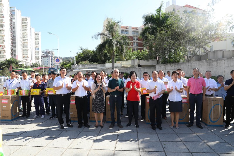 随后,邓朝晖和校工会、后勤集团班子成员一起为员工们送上了空调扇、正气水、绿豆、凉茶等防暑降温物品,并看望慰问了在群贤校门值守的安防人员。