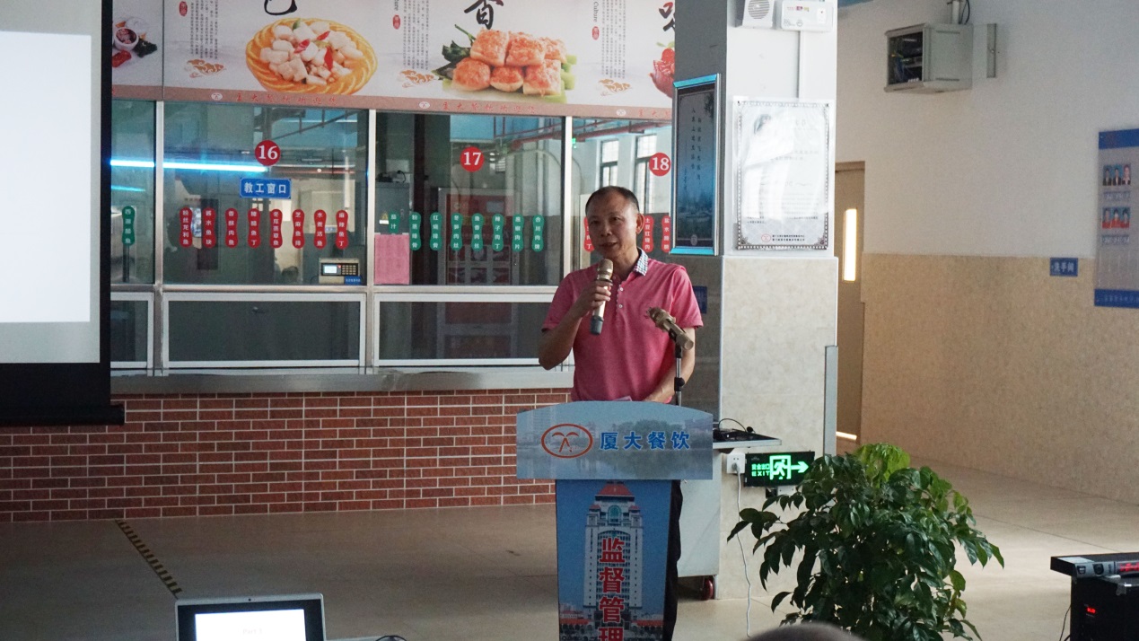 翔安科技中学餐厅经理黄进春为来宾解读厦门大学后勤“5D”现场管理体系