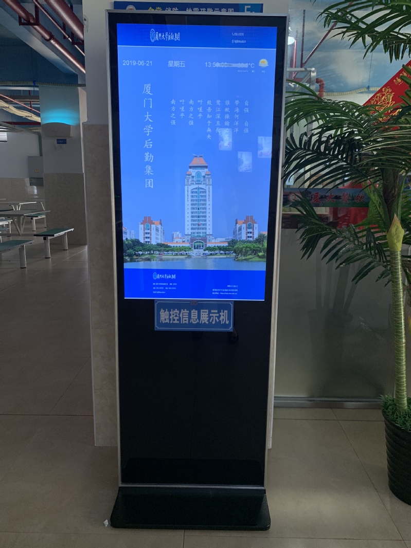 餐厅内定制的设施设备也成为了此次参观的一大亮点。翔安科技餐厅紧跟集团信息化建设的脚步,引进触控信息展示机,方便师生查阅了解公司文化、供应商资料等信息。