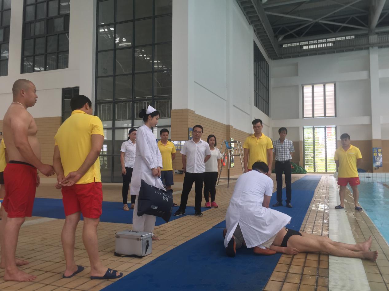 6月17日下午,翔安校区佘明培游泳馆联合翔安校区医务室进行了游泳池救生安全演练。学生公寓与环境服务中心副主任、翔安校区服务办副主任黄团良到场观摩指导,医务室副主任医师朱学东和护师吴丹凤到场参加。