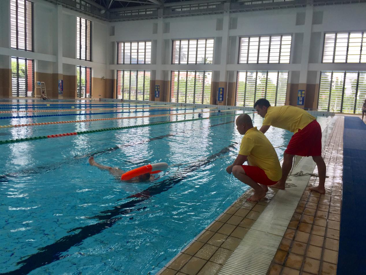 演练前,翔安校区场馆管理人员再三商讨演练方案,并于6月14日携游泳馆全体工作人员进行预演,最终确定救生演练方案。此次演练分别模拟了两个场景,一是“溺水者神志清醒,能够顺利抓住救生员抛出的救生圈”情况下的营救;二是“溺水者已经呛水过多,无力抓住救生圈”情况下的营救。