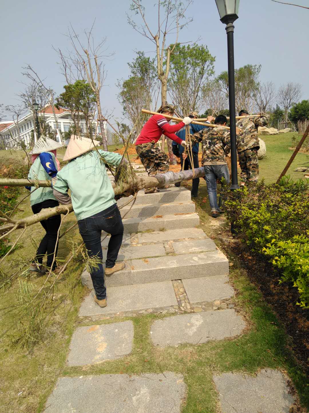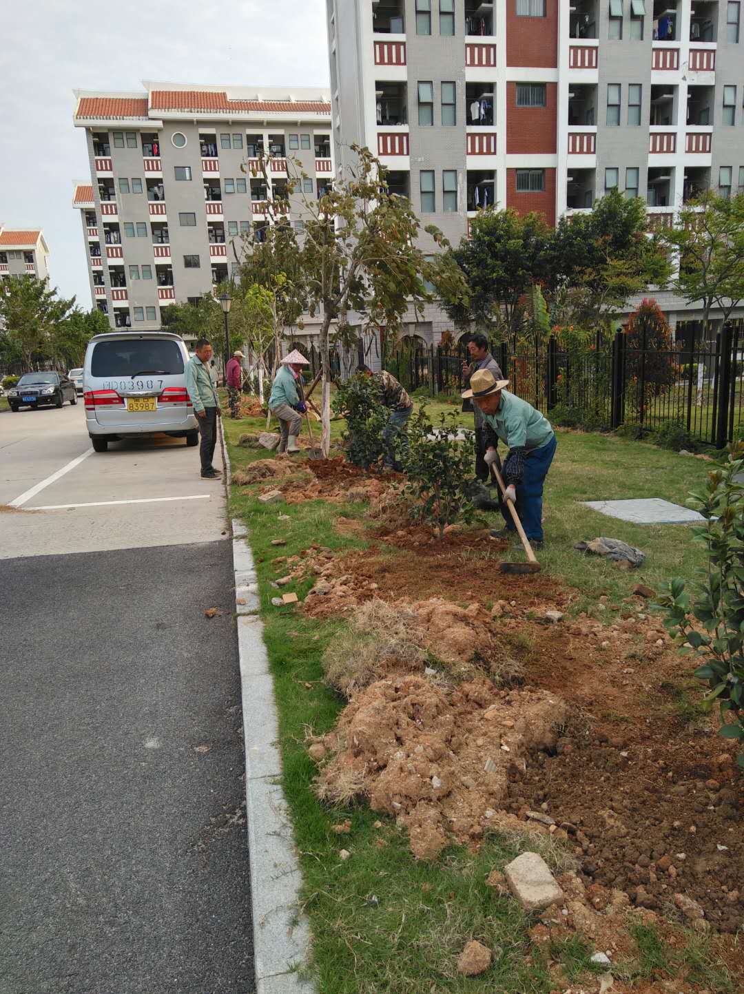 2019年4月,完成兴业银行植树的后勤保障,移植鸡蛋花24株、种植乔木130株