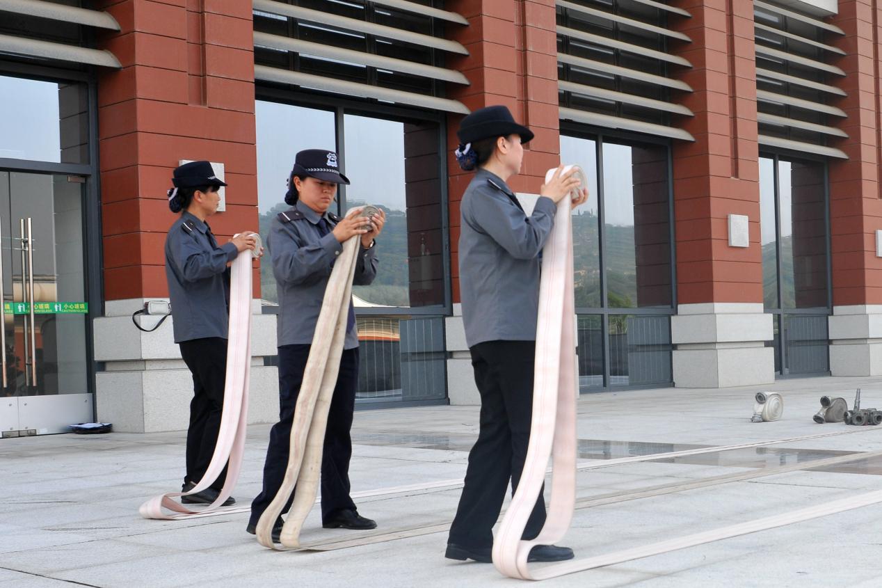 为确保本次演练能够达到预期效果,日前,安防队组织队员进行了灭火器使用方法学习和水带操训练。