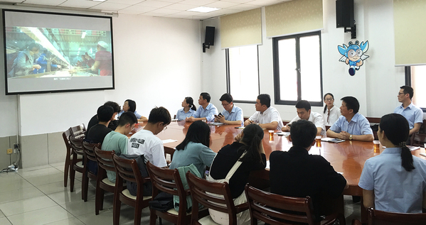膳委会同学代表首先观看了中心的宣传影片,对中心的性质及工作流程有了进一步的了解。随后,同学们对思明校区各餐厅提出了各类意见和建议。