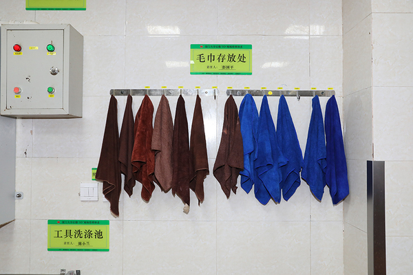现场大家看到,厨房地面无油无水、操作台清洁无油腻;物品放置井然有序、分类清晰;食材仓库等归类整齐、标识清楚;毛巾按颜色分类、工具整齐地放置……后厨内每件物品各归其位,每个岗位责任到人,形成了一道风景,得到了各位领导和评审员的认可和肯定。