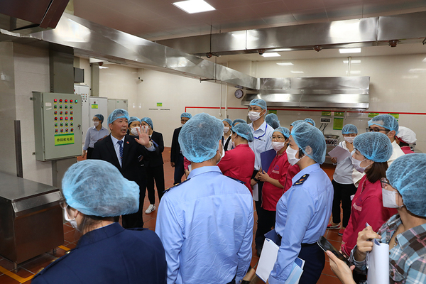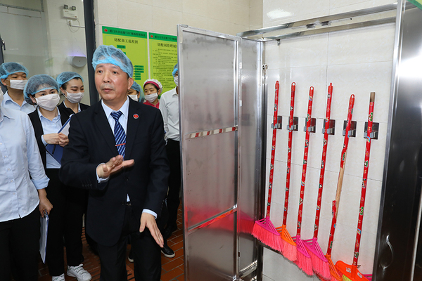 评审会现场,中心主任江森民带领大家实地领略“5D”管理体系在后厨各个区域的应用,大到“5D”管理体系核心思想的介绍,细到工具收纳箱的讲解,在实地参观、考察的过程中,直观感受餐厅后厨的环境卫生、食品安全及操作规范等情况。各位评审人员一边参观,一边对照《厦门大学后勤“5D”现场管理体系评分标准(2019)》,细心查看、严谨打分,不时交流讨论。