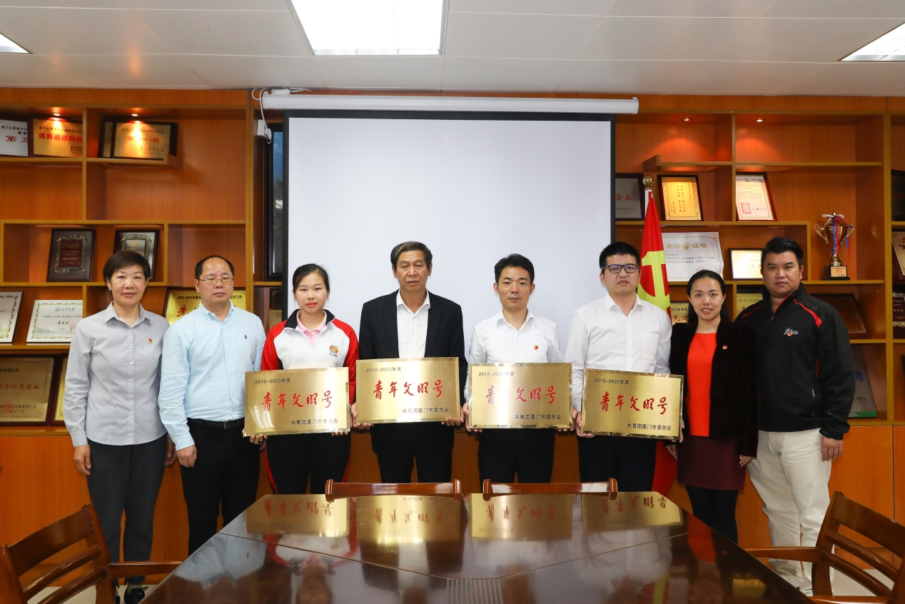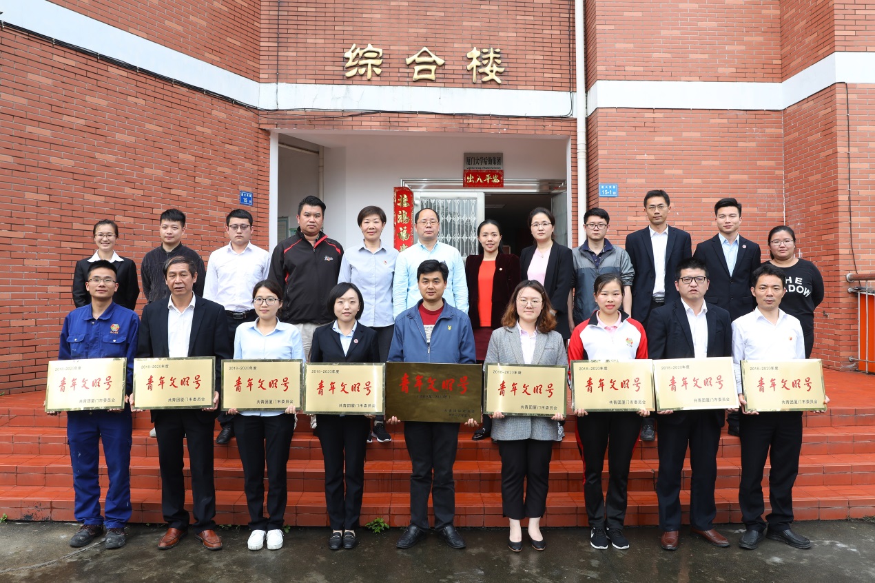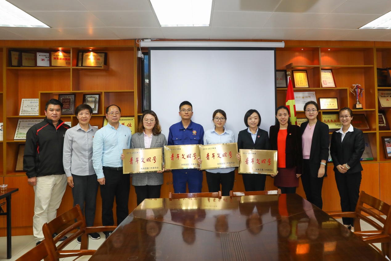 林曦、刘立荣、邓泽君、刘雯纹、周林琪、沈靓等共同为获得认定的青年文明号集体、优秀号长授牌。