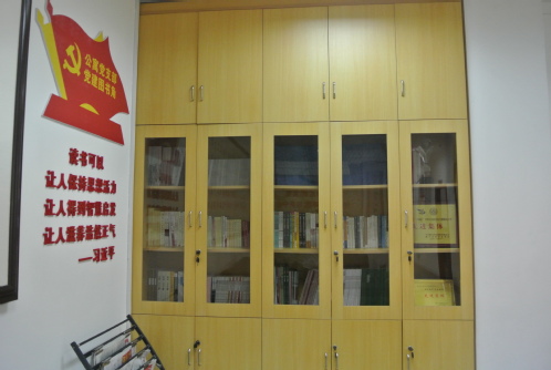 目前,图书角墙面上贴有醒目的“党建图书角”标识,并设有书柜、报刊架和管理人员,藏书涉及党建类、文史类、管理类、后勤服务类等多种书籍以及多样期刊、杂志、报纸,其中包括《习近平新时代中国特色社会主义思想三十讲》、《习近平谈治国理政》、《习近平总书记系列重要讲话读本》、《马克思主义哲学十讲》》、《聚焦供给侧结构性改革》等等,支部党员在内的中心全体员工均可借阅。