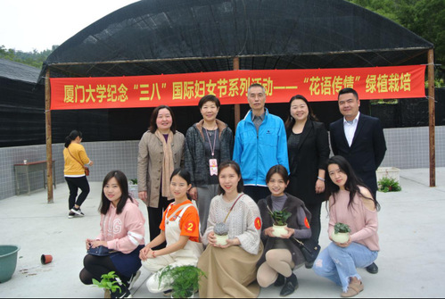 3月17日,由学校工会主办的“花语传情”绿植栽培活动在思明校区水库花圃成功举办。校工会副主席叶鹏飞、后勤集团党委副书记邓泽君亲临现场观摩指导。作为第109个“三八”国际妇女节系列活动之一,本次绿植栽培活动旨在丰富我校女教职工的精神文化生活,体现校工会对女教职工的关怀,陶冶情操、增进沟通,给女教职工营造一个积极健康、团结向上的节日氛围。