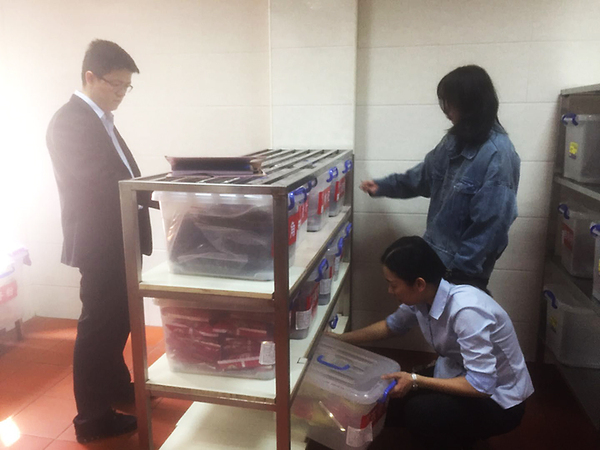 由采购组、机修组、办公室组成的检查小组,在中心副主任林琳的带领下,再次对思明校区各餐厅进行抽检,针对餐厅食材仓储情况,就仓库管理是否按规范进行,食品存放是否离地离墙,是否做到先进先出,是否存在过期食品,散装食品是否表明食品名称、生产日期、保质期等内容,食品实物是否与索证索票信息对称等方面从粮、油、米、面到调味、香辛料、食品添加剂逐项进行细致检查。