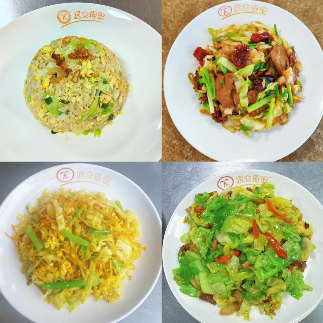 经典的手撕包菜,食堂阿姨将包菜手撕成不规则块状,再由食堂大厨迅速翻炒,搭配蒜片、干辣椒,出锅时爽脆可口,咸香微辣,刺激着师生们的味蕾。包菜炒鸡蛋,把包菜切成细丝混入鸡蛋液,既有鸡蛋的嫩滑,又有包菜的清甜,营养丰富。包菜炒饭也毫不逊色,包菜的脆与大米的软糯相互交织,浓郁的酱汁包裹其中,每一口都充满了满足感……这些多样化的包菜菜品,极大地丰富了师生们的就餐选择,让大家在校园里享受到健康又美味的饮食体验。
