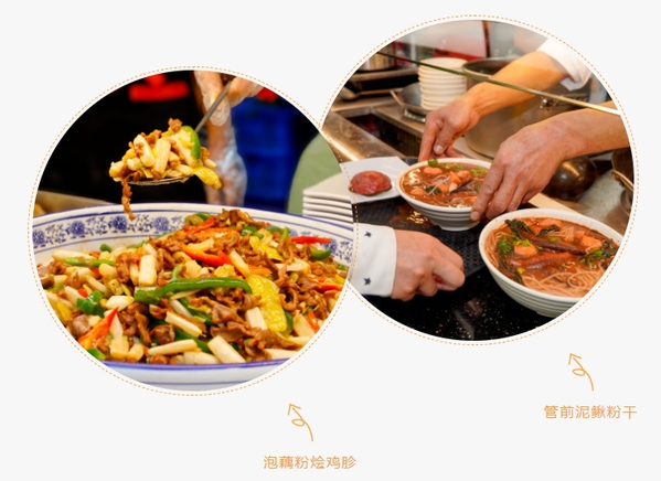 11月27日至11月30日,来自厦门大学、福州大学、华侨大学、闽南师范大学、三明学院、龙岩学院、莆田学院、宁德师范学院、武夷学院的厨师分别进驻厦大思明校区芙蓉餐厅二楼的9个美食档口,精心烹饪福州鱼丸、泥鳅粉干、武夷熏鹅等35种福建特色菜品。