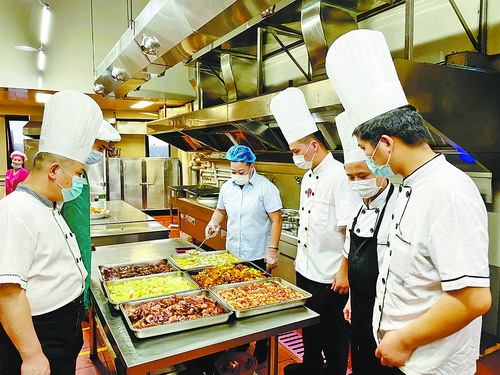 新冠疫情期间,作为厦门大学用餐人数最多的餐厅,勤业餐厅的供餐安全压力成倍增长。餐厅厨师组和其他后厨人员,严格按照防疫和“5D”管理体系的要求,落实落细做好各项流程,每日严格消毒餐具、后厨,守护着师生的安全,多次在国家卫健委、教育部,省、市等各级检查中获得肯定。