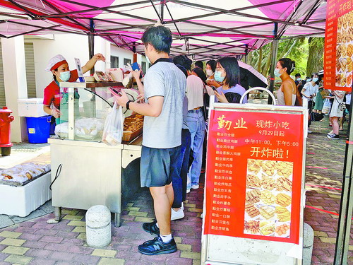 疫情期间,思明校区本部的勤业餐厅到海韵学生公寓提供现炸现卖的美味小吃。