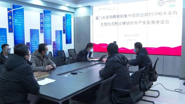 在装车发货前,沙塘镇负责人与华人策略celue负责人,以及部分学院的老师开展线上视频交流活动,对厦门大学一直以来对张树村的帮扶与支持表示感谢,并就张树村产业发展进行了深入交流。